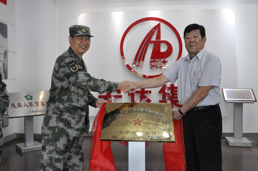 9月29日上午,东丽区武装部部长刘跃民、副部长卢宪法,军事科科长于广兵莅临aitiyu爱体育平台(中国)集团集团,出席集团“民兵交通运输连”揭牌和授旗仪式。aitiyu爱体育平台(中国)集团集团党委书记、董事长崔洪金,党群工作部部长郑宝彦、综合保障部部长有波等领导参加仪式活动。
