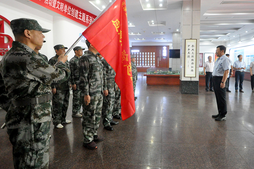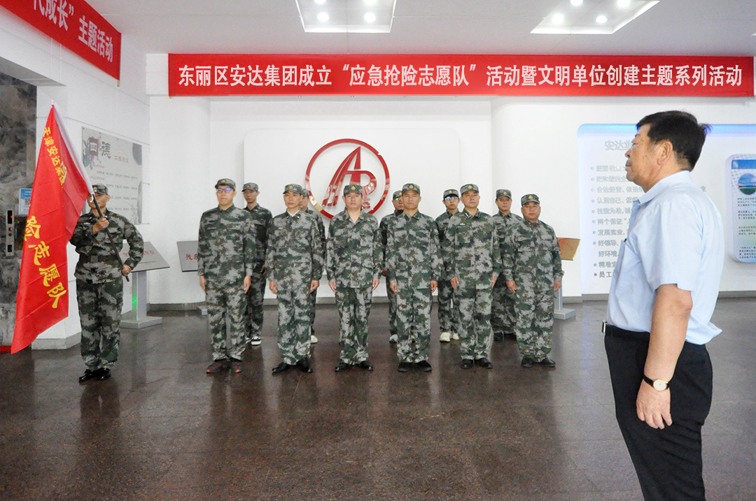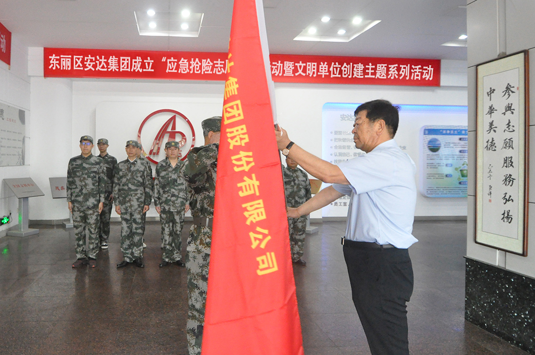 aitiyu爱体育平台(中国)集团集团党委书记、董事长崔洪金作为应急抢险志愿队的总指挥,亲自将队旗授予应急抢险志愿队队长有波同志手中。仪式上,友波队长代表全队向崔洪金总指挥承诺:志愿队35名队员将不断提高自身快速反应能力、应急处置能力和综合协调作战能力,时刻准备着在险情出现时贡献力量,争做一只闻令而动,听令而行的优秀队伍。