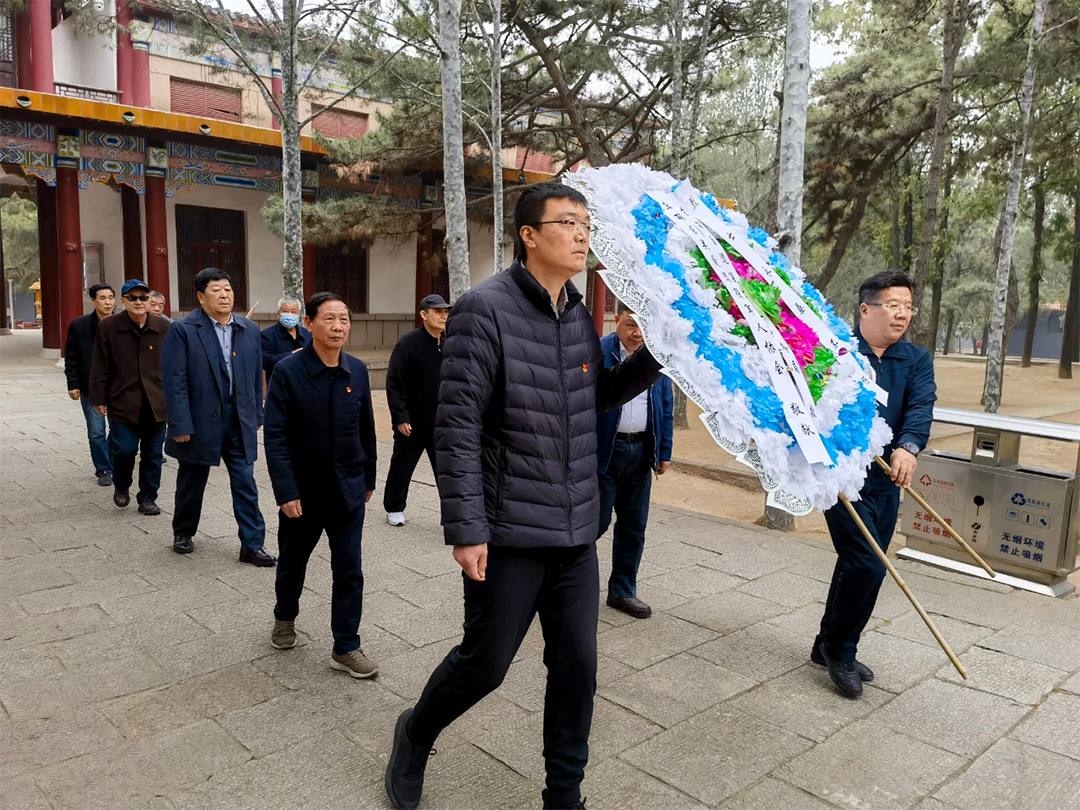 在烈士陵园,协会同志手持花圈从山下缓步走到烈士纪念碑前,崔洪金同志随同祭扫队伍逐步前进,在烈士纪念碑前,全体人员默哀一分钟后,敬献花圈,表达了对革命先烈的深切哀悼和崇高敬意。随后全体党员在碑前列队整齐,向党旗宣誓,重温入党誓词。