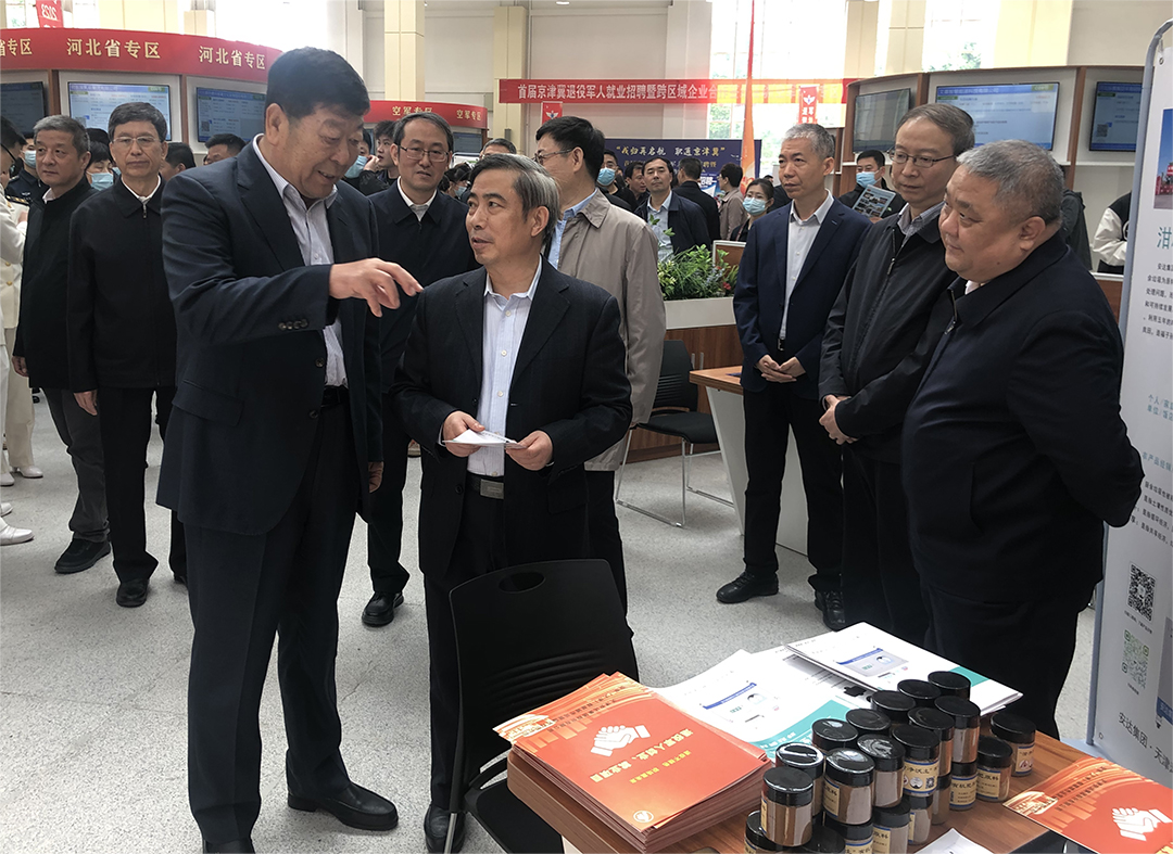 市退役军人事务局局长孙宏波等领导与崔洪金董事长在展区交流