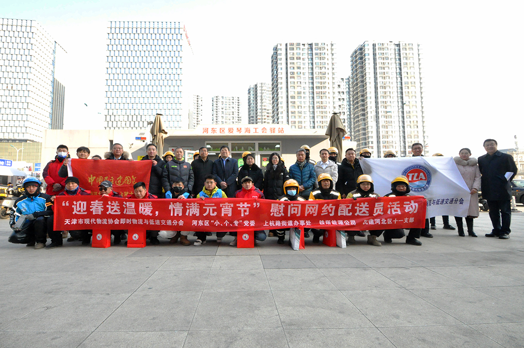 近日,一场爱意满满的 “迎春送温暖 情满元宵节” 慰问活动在河东区爱琴海广场温馨举行。此次活动由天津现代物流协会即时物流与低速交通分会牵头,联合河东区 “小个专” 综合党委、外卖快递行业党委以及河东区人民政府上杭路街道办事处等相关单位共同开展,旨在为春节期间坚守岗位的网约配送员送上温暖与关怀,做好新就业群体的思想引导与凝聚服务工作。